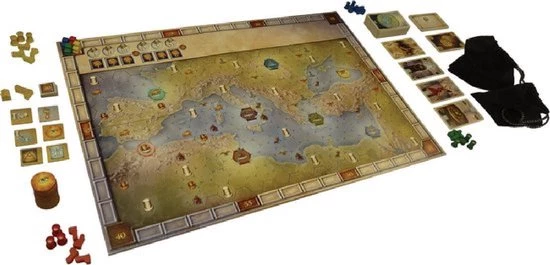 | Verpakkingsinhoud | Inhoud:, 1, speelbord, 48, pilaren, 48, voeten, 4, scorepionnen, 1, grote, voet, 1, tempel, 111, fiches, 75, actiekaarten, 7, speciale, geldkaarten, 8, volkenkaarten, 1, buidel, 4, overzichtskaarten, de, spelregels |