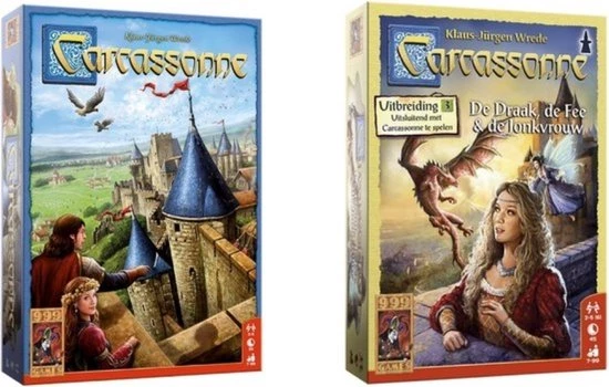 De omgeving van Carcassonne wordt geteisterd door een rondzwervende draak. Dappere helden proberen hun horigen tegen het reusachtige monster te beschermen, maar zonder hulp van de fee staan ze volkomen machteloos. In de stad flirt de jonkvrouw met afgeleide ridders, terwijl boeren via magische poorten aan de aandacht van de draak trachten te ontsnappen. Carcassonne wordt met de uitbreiding De Draak, de Fee en de Jonkvrouw pas echt een sprookje!Hoe combineer ik de verschillende Carcassonne-producten?