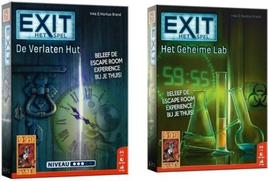 Exit is het uitdagende co?peratieve escape room-spel! Ontsnap zo snel mogelijk uit de verlaten boshut. Probeer binnen anderhalf uur alle puzzels op te lossen en alle codes te breken. Alleen dan ontsnappen jullie uit de locatie waar jullie opgesloten zitten. Logisch nadenken en doorzettingsvermogen zijn vereist om dit spel tot een goed einde te brengen. En komen jullie er echt niet uit, dan bevat het spel tipkaarten om jullie op het goede spoor te brengen. EXIT: De Verlaten Hut is maar ??n keer speelbaar omdat het speelmateriaal moet worden beschreven, gevouwen of afgescheurd. Maar net als in een echte escape room garanderen we een zeer intense puzzel- en speelervaring! De puzzels zijn vrij pittig. Daardoor is het spel vooral geschikt voor fervente puzzelaars en escape room-liefhebbers. Niveau: Gevorderden