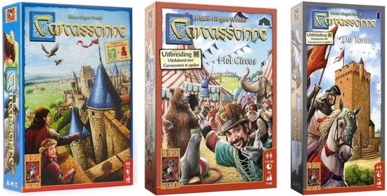 Nieuwe versie van de uitbreiding op het populaire legspel Carcassonne Bouw gezamenlijk aan torens om meeples van andere spelers gevangen te nemen. Als 2 partijen een meeple van elkaar hebben opgesloten, wisselen ze deze weer uit. Meeples zijn te beschermen door een toren in bezit te nemen. In combinatie met het basisspel is deze uitbreiding met ten hoogste 5 spelers te spelen, maar met Kathedralen & Herbergen kan er nog een speler meedoen. Carcassonne: De Toren is de ideale uitbreiding voor spelers die het een genot vinden om hun tegenstanders goed dwars te zitten.Hoe combineer ik de verschillende Carcassonne-producten?