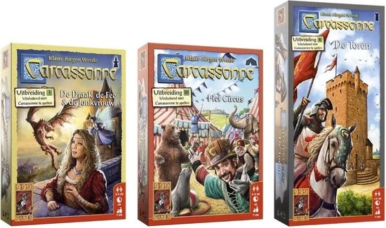 De omgeving van Carcassonne wordt geteisterd door een rondzwervende draak. Dappere helden proberen hun horigen tegen het reusachtige monster te beschermen, maar zonder hulp van de fee staan ze volkomen machteloos. In de stad flirt de jonkvrouw met afgeleide ridders, terwijl boeren via magische poorten aan de aandacht van de draak trachten te ontsnappen. Carcassonne wordt met de uitbreiding De Draak, de Fee en de Jonkvrouw pas echt een sprookje!Hoe combineer ik de verschillende Carcassonne-producten?