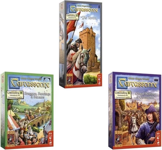 Nieuwe versie van de uitbreiding op het populaire legspel Carcassonne Bouw gezamenlijk aan torens om meeples van andere spelers gevangen te nemen. Als 2 partijen een meeple van elkaar hebben opgesloten, wisselen ze deze weer uit. Meeples zijn te beschermen door een toren in bezit te nemen. In combinatie met het basisspel is deze uitbreiding met ten hoogste 5 spelers te spelen, maar met Kathedralen & Herbergen kan er nog een speler meedoen. Carcassonne: De Toren is de ideale uitbreiding voor spelers die het een genot vinden om hun tegenstanders goed dwars te zitten.Hoe combineer ik de verschillende Carcassonne-producten?