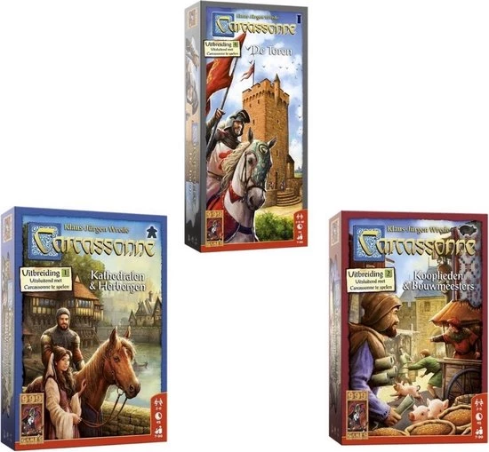 Nieuwe versie van de uitbreiding op het populaire legspel Carcassonne Bouw gezamenlijk aan torens om meeples van andere spelers gevangen te nemen. Als 2 partijen een meeple van elkaar hebben opgesloten, wisselen ze deze weer uit. Meeples zijn te beschermen door een toren in bezit te nemen. In combinatie met het basisspel is deze uitbreiding met ten hoogste 5 spelers te spelen, maar met Kathedralen & Herbergen kan er nog een speler meedoen. Carcassonne: De Toren is de ideale uitbreiding voor spelers die het een genot vinden om hun tegenstanders goed dwars te zitten.Hoe combineer ik de verschillende Carcassonne-producten?