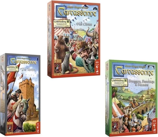 Uitbreiding op het populaire legspel Carcassonne Het circus reist rond in de omgeving van Carcassonne en overal waar het zijn tent opzet, stromen meeples toe. Je probeert je meeples in de buurt van de circustent te zetten om extra punten te verdienen, afhankelijk van een gedekt dierfiche onder de tent. Verder kun je je meeples nu ook als artiest inzetten en daar bij een speciale puntentellingen 5 punten per stuk mee verdienen. Circusdirecteuren zijn gewone meeples, maar krijgen extra punten als ze hun werk in de directe omgeving van het circus of artiesten doen. In combinatie met het basisspel is deze uitbreiding met ten hoogste 5 spelers te spelen, maar met Kathedralen & Herbergen kan er nog een speler meedoen. Wij adviseren deze uitbreiding alleen met het nieuwste basisspel van Carcassonne uit 2016 te combineren voor de beste speelervaring, maar Het Circus is ook nog te spelen met het oude basisspel en de uitbreidingen. De tegels hebben een nieuwe stijl tekeningen, maar de achterkanten zijn gelijk gebleven.