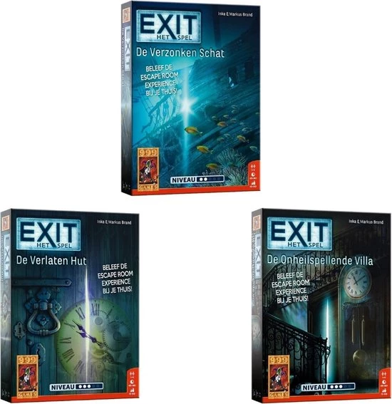 Exit is het uitdagende co?peratieve escape room-spel! Ontsnap zo snel mogelijk uit de verlaten boshut. Probeer binnen anderhalf uur alle puzzels op te lossen en alle codes te breken. Alleen dan ontsnappen jullie uit de locatie waar jullie opgesloten zitten. Logisch nadenken en doorzettingsvermogen zijn vereist om dit spel tot een goed einde te brengen. En komen jullie er echt niet uit, dan bevat het spel tipkaarten om jullie op het goede spoor te brengen. EXIT: De Verlaten Hut is maar ??n keer speelbaar omdat het speelmateriaal moet worden beschreven, gevouwen of afgescheurd. Maar net als in een echte escape room garanderen we een zeer intense puzzel- en speelervaring! De puzzels zijn vrij pittig. Daardoor is het spel vooral geschikt voor fervente puzzelaars en escape room-liefhebbers. Niveau: Gevorderden