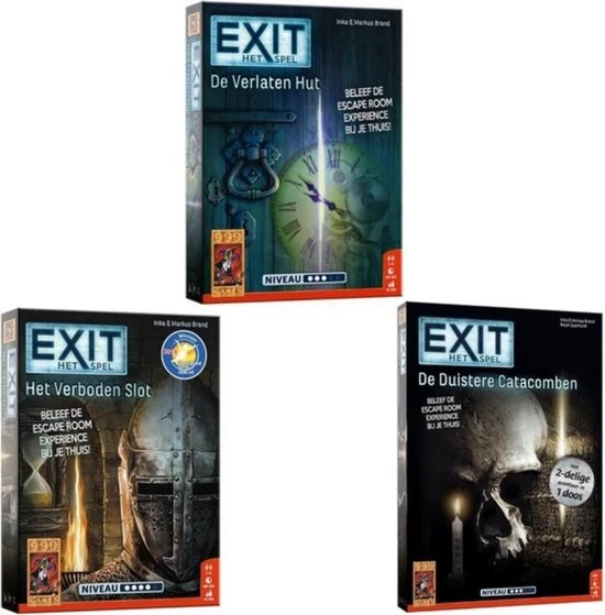 Exit is het uitdagende co?peratieve escape room-spel! Ontsnap zo snel mogelijk uit de verlaten boshut. Probeer binnen anderhalf uur alle puzzels op te lossen en alle codes te breken. Alleen dan ontsnappen jullie uit de locatie waar jullie opgesloten zitten. Logisch nadenken en doorzettingsvermogen zijn vereist om dit spel tot een goed einde te brengen. En komen jullie er echt niet uit, dan bevat het spel tipkaarten om jullie op het goede spoor te brengen. EXIT: De Verlaten Hut is maar ??n keer speelbaar omdat het speelmateriaal moet worden beschreven, gevouwen of afgescheurd. Maar net als in een echte escape room garanderen we een zeer intense puzzel- en speelervaring! De puzzels zijn vrij pittig. Daardoor is het spel vooral geschikt voor fervente puzzelaars en escape room-liefhebbers. Niveau: Gevorderden