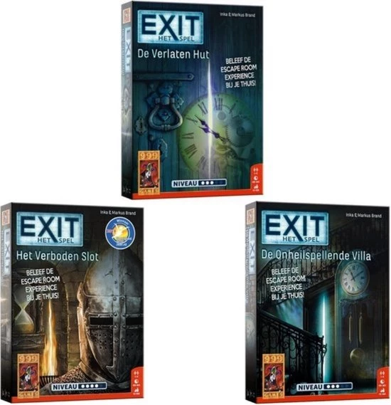 Exit is het uitdagende co?peratieve escape room-spel! Ontsnap zo snel mogelijk uit de verlaten boshut. Probeer binnen anderhalf uur alle puzzels op te lossen en alle codes te breken. Alleen dan ontsnappen jullie uit de locatie waar jullie opgesloten zitten. Logisch nadenken en doorzettingsvermogen zijn vereist om dit spel tot een goed einde te brengen. En komen jullie er echt niet uit, dan bevat het spel tipkaarten om jullie op het goede spoor te brengen. EXIT: De Verlaten Hut is maar ??n keer speelbaar omdat het speelmateriaal moet worden beschreven, gevouwen of afgescheurd. Maar net als in een echte escape room garanderen we een zeer intense puzzel- en speelervaring! De puzzels zijn vrij pittig. Daardoor is het spel vooral geschikt voor fervente puzzelaars en escape room-liefhebbers. Niveau: Gevorderden