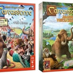 Uitbreiding op het populaire legspel Carcassonne Het circus reist rond in de omgeving van Carcassonne en overal waar het zijn tent opzet, stromen meeples toe. Je probeert je meeples in de buurt van de circustent te zetten om extra punten te verdienen, afhankelijk van een gedekt dierfiche onder de tent. Verder kun je je meeples nu ook als artiest inzetten en daar bij een speciale puntentellingen 5 punten per stuk mee verdienen. Circusdirecteuren zijn gewone meeples, maar krijgen extra punten als ze hun werk in de directe omgeving van het circus of artiesten doen. In combinatie met het basisspel is deze uitbreiding met ten hoogste 5 spelers te spelen, maar met Kathedralen & Herbergen kan er nog een speler meedoen. Wij adviseren deze uitbreiding alleen met het nieuwste basisspel van Carcassonne uit 2016 te combineren voor de beste speelervaring, maar Het Circus is ook nog te spelen met het oude basisspel en de uitbreidingen. De tegels hebben een nieuwe stijl tekeningen, maar de achterkanten zijn gelijk gebleven.