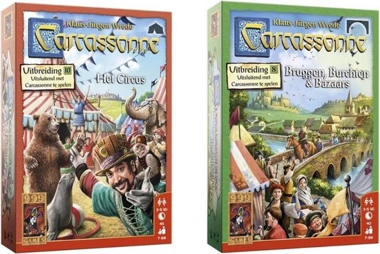 Uitbreiding op het populaire legspel Carcassonne Het circus reist rond in de omgeving van Carcassonne en overal waar het zijn tent opzet, stromen meeples toe. Je probeert je meeples in de buurt van de circustent te zetten om extra punten te verdienen, afhankelijk van een gedekt dierfiche onder de tent. Verder kun je je meeples nu ook als artiest inzetten en daar bij een speciale puntentellingen 5 punten per stuk mee verdienen. Circusdirecteuren zijn gewone meeples, maar krijgen extra punten als ze hun werk in de directe omgeving van het circus of artiesten doen. In combinatie met het basisspel is deze uitbreiding met ten hoogste 5 spelers te spelen, maar met Kathedralen & Herbergen kan er nog een speler meedoen. Wij adviseren deze uitbreiding alleen met het nieuwste basisspel van Carcassonne uit 2016 te combineren voor de beste speelervaring, maar Het Circus is ook nog te spelen met het oude basisspel en de uitbreidingen. De tegels hebben een nieuwe stijl tekeningen, maar de achterkanten zijn gelijk gebleven.
