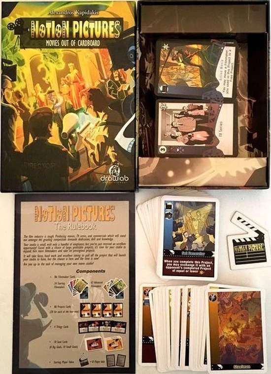 Motion Pictures is a card game that uses a hand management mechanism with strong set collection and deck building elements.