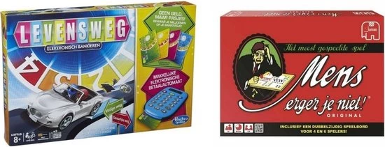 In deze moderne versie van het bekende spel Levensweg regel je alle geldzaken met de elektronische geldautomaat. Geen cash geld, maar bankpasjes dus! Bewaar je miljoenen op je bankpasje en rij met je auto van start tot pensioen. Kies je levensweg en je stapt in een spel boordevol avontuur, gezinsleven en onverwachte verrassingen. Als iedereen gepensioneerd is, wint de rijkste speler.