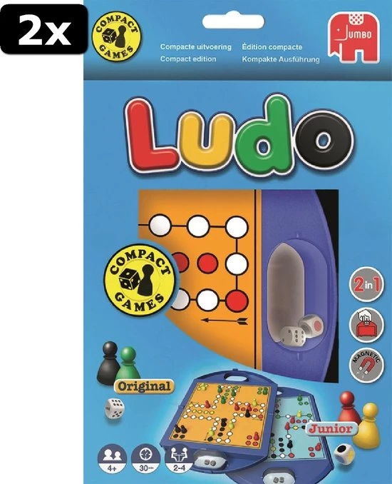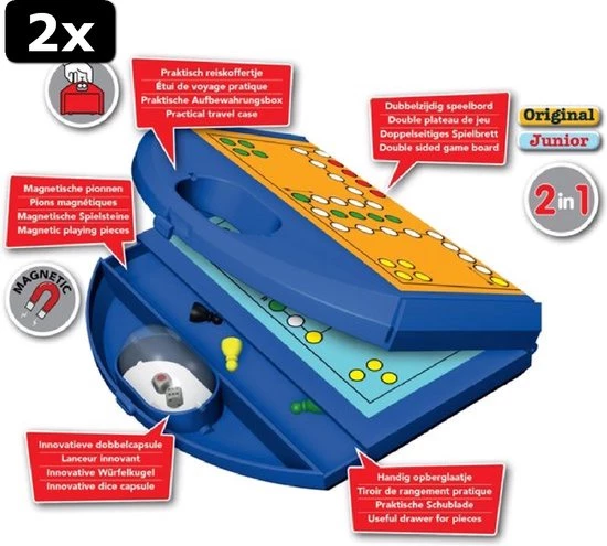 Dit reisspel komt in een handig koffertje en neem je overal gemakkelijk mee naartoe! Het spel is uitgevoerd met een dubbelzijdig speelbord (original & junior) en innovatieve dobbelcapsule, zo raak je de dobbelstenen niet kwijt. De magnetische pionnen kunnen worden opgeborgen in het handige opberglaatje. Geschikt voor kinderen vanaf 4 jaar.