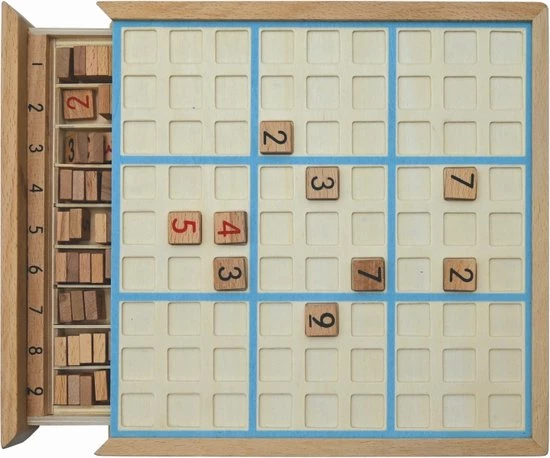 Ecologisch verantwoorde houten SudokuSpeel Sudoku en maak plezier.Een boekje met 100 Sudoku-roosters en antwoorden om te starten met spelen4 Sudoku-niveausEen ge?ntegreerde lade om de stukken veilig op te bergenWiskundige tekens inbegrepen om te oefe