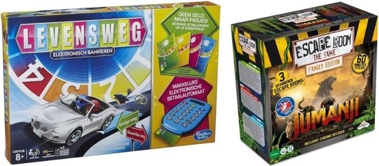 In deze moderne versie van het bekende spel Levensweg regel je alle geldzaken met de elektronische geldautomaat. Geen cash geld, maar bankpasjes dus! Bewaar je miljoenen op je bankpasje en rij met je auto van start tot pensioen. Kies je levensweg en je stapt in een spel boordevol avontuur, gezinsleven en onverwachte verrassingen. Als iedereen gepensioneerd is, wint de rijkste speler.
