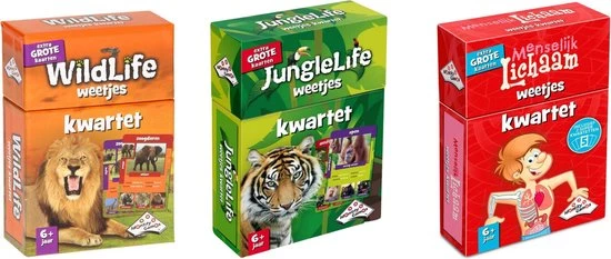 JungleLife weetjes kwartet bestaat uit extra grote kaarten met de mooiste plaatjes ?n weetjes over de betreffende dieren. Dat is leuk en leerzaam. Wie spaart de meeste kwartetten? Geschikt voor kinderen vanaf 6 jaar, 2-4 spelers.