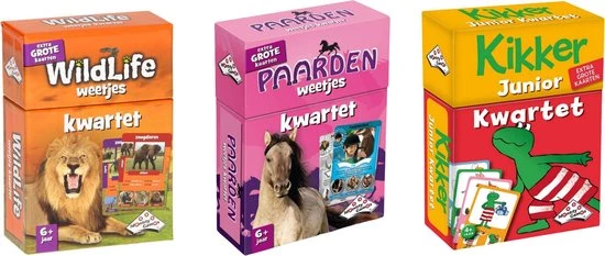 Kwartetten met Kikker, het leukste kaartspel voor kinderen waarbij steeds vier kaarten bij elkaar gezocht worden. ‘Kwartet! Met leuke illustraties van Kikker en zijn vriendjes! Wat heeft eend nodig in de winter? Wat krijgt Kikker voor zijn verjaardag? Wat neemt Rat mee op vakantie?