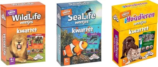 Dit weetjes kwartet is niet alleen een leuk spel.. het is ook nog erg leerzaam. Het Sealife Weetjeskwartet gaat over de dieren uit zee?n en oceanen, afgebeeld op extra grote kaarten.Op deze kaarten staan foto’s en ook nog eens interessante weetjes! Met een superkwartet van 5 kaarten! Hoe oud kan een dolfijn worden? Hoe snel kan een inktvis zwemmen? Hoe zwaar kan een walvis worden?