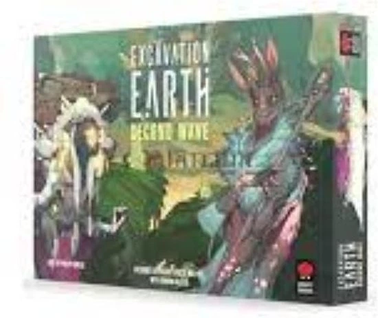 Second Wave is the first expansion for Excavation Earth, introducing two new races – the Collectors and the Influencers – along with new game-play elements and ways of scoring. The Observation Barge, which lets you further manipulate the market demand for artifacts and score points at the end of the game. Achievements add a whole new way of scoring by completing set goals and Racial Wildcards give each race their own, more powerful action card to boost their round!