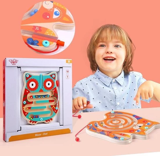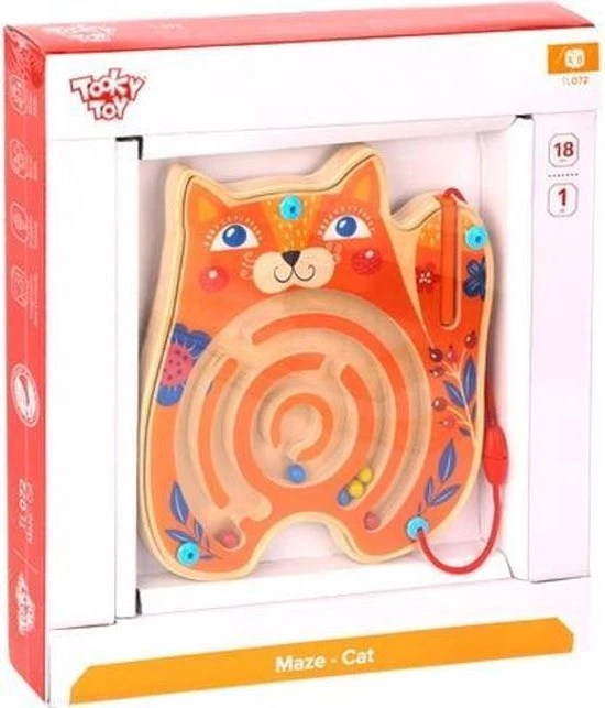 Deze superleuke doolhofkat zorgt gegarandeerd voor urenlang spelplezier! Met het magnetische stokje kan jouw kindje de knikkers verplaatsen en sorteren. Zo leert hij spelenderwijs kleuren herkennen en ontwikkelt zijn fijne motoriek. De knikkers bevinden zich achter stevig, transparant plexiglas.