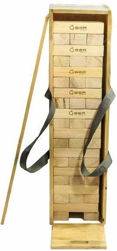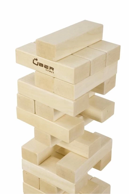 De set zit in een sterke, mooie draagtas, zodat het spel netjes op te bergen is en compleet blijft.Dit traditionele spel maar dan in gigantische afmetingen. Door de hoge kwaliteit van de 56 blokken kunt u een toren bouwen van 90 cm hoog. Daarna begint het spel. De bedoeling is een blok uit de stapel te halen en deze bovenop te leggen. Hierdoor kan de toren tot meer dan 150cm hoog worden.