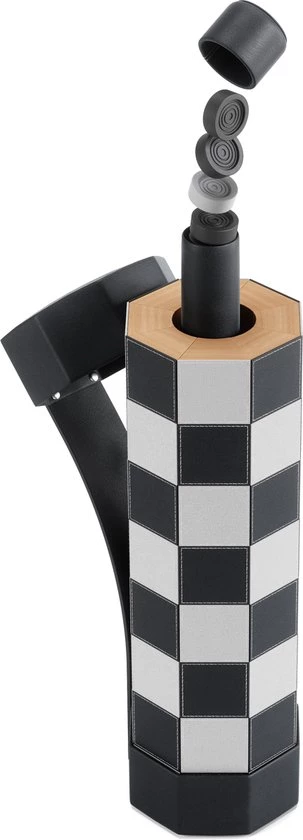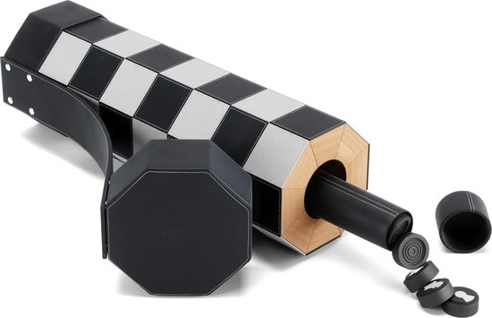 Rolz is een draagbaar schaak- en damspel voor zowel thuis als onderweg. Alle onderdelen van Rolz zijn gemakkelijk op te rollen en te bewaren in de compacte opbergdoos. De damstenen van kunsthars hebben een bedrukte zijde met schaakfiguren en zijn dus geschikt voor zowel dam- als schaakliefhebbers. Je neemt het spel overal mee naartoe met de meegeleverde opbergdoos en handgreep. Het duurzame ontwerp bestaat uit een houten basis met zwart-wit gestikt vegan leer.