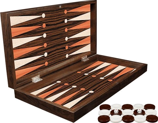 Klassiek Backgammon, of Tavla zoals het in Turkije genoemd wordt is een behendigheidsspel dat je met 2 spelers tegen elkaar speelt. De luxe backgammon set is gemaakt van hout en wordt geleverd inclusief stenen en dobbelstenen. De dobbelsteentjes zijn kleiner dan je misschien gewend bent, precies zoals men het spel in de Turkse straatjes speelt. De doos sluit magnetisch, zodat je alle stenen in het spel kunt opbergen. De sluiting is gemaakt van metalen klips. Het speelveld is krasvast met 95% acryl glanzende UV-lak.